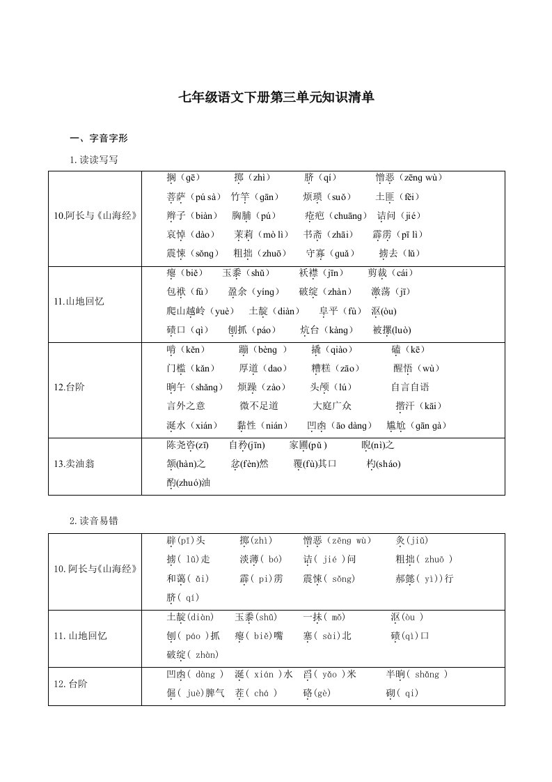 七下语文第三单元(单元知识清单)-(统编版)