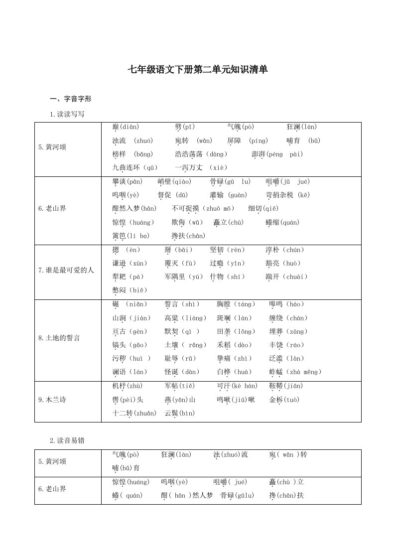 七下语文第二单元(单元知识清单)-(统编版)