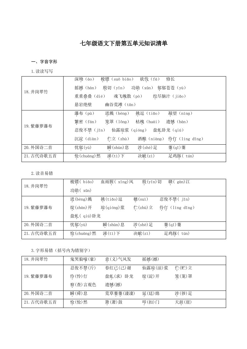 七下语文第五单元(单元知识清单)-(统编版)