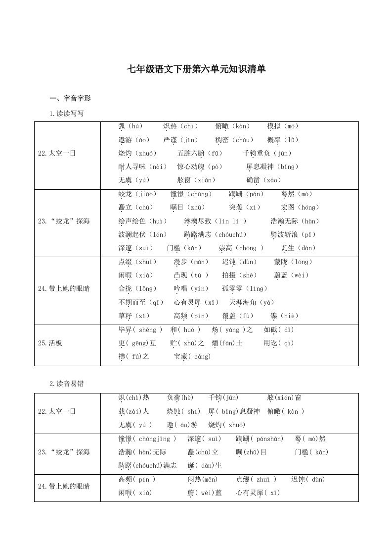 七下语文第六单元(单元知识清单)-(统编版)