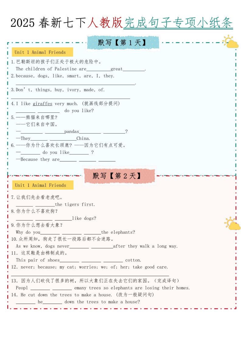 2025春七下语文第二单元看音写字QXYWBB-0006