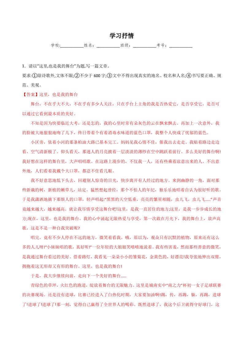 七下语文第二单元(单元知识清单)-(统编版)QXYWBB-0033