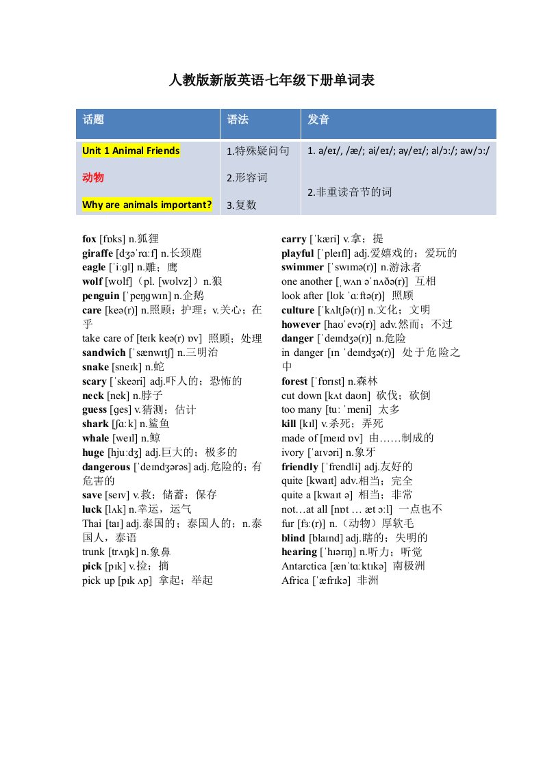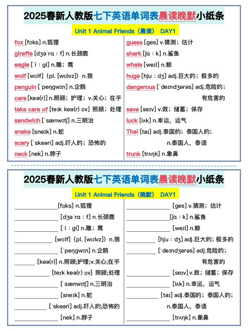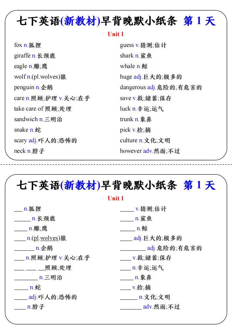 七下语文第一单元(单元知识清单)-(统编版)QXYWBB-0031