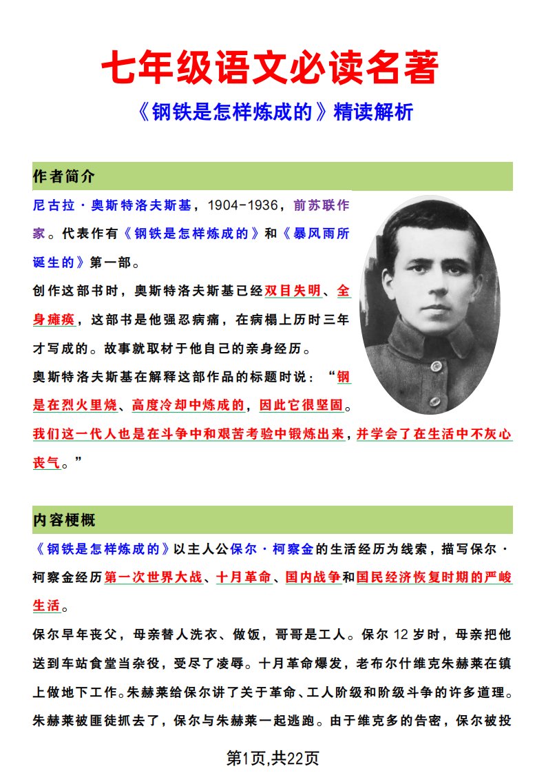 01 第1-5章《钢铁是怎样炼成的》思维导图QXYWBB-0271