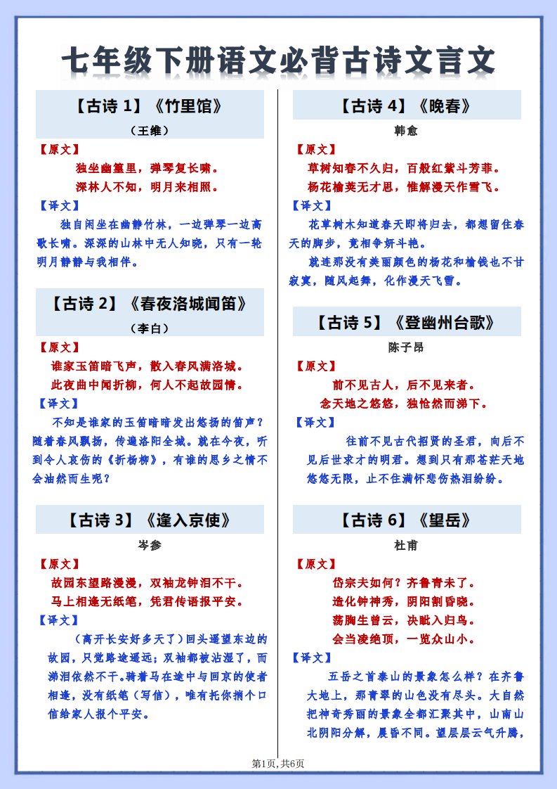 七下语文第六单元(单元知识清单)-(统编版)QXYWBB-0035