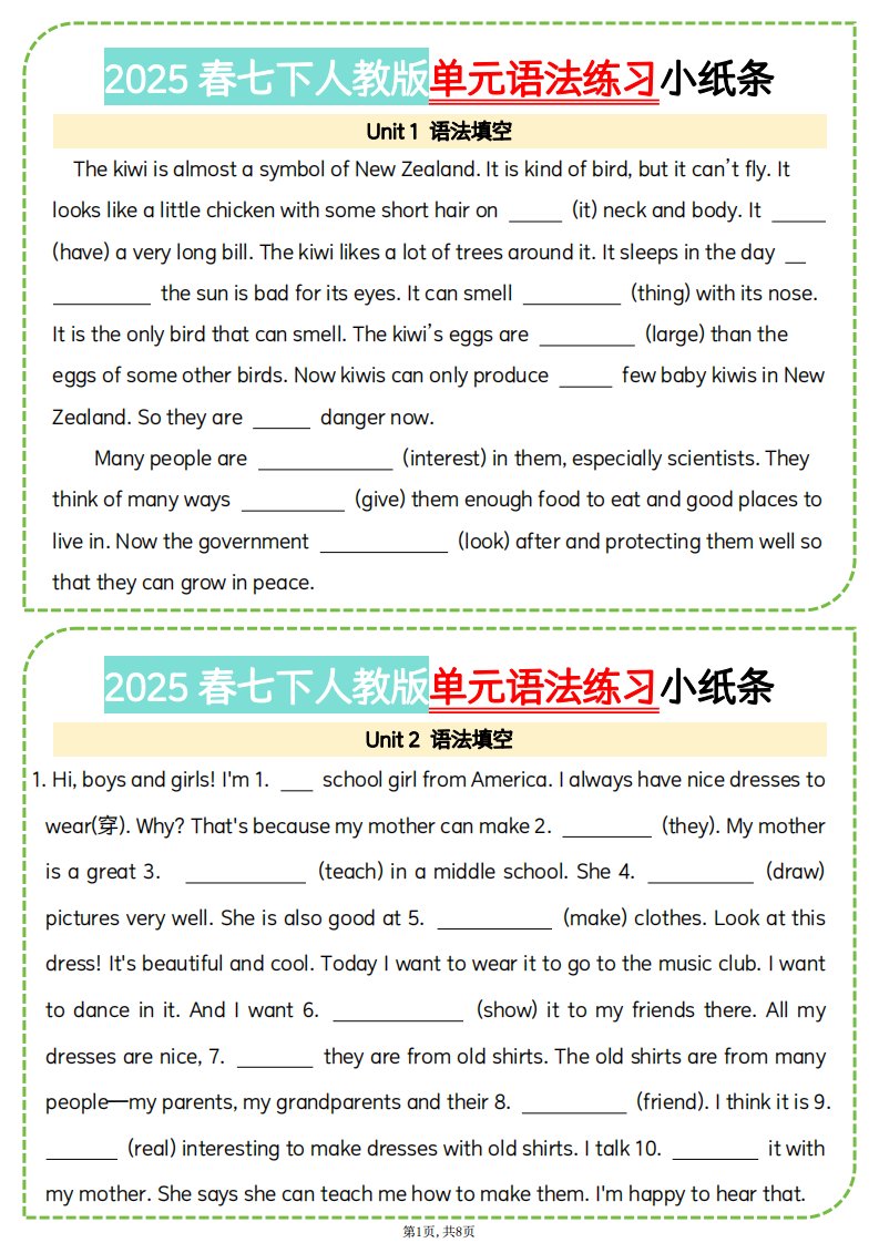 【上岸亲选】七年级全七科下册(人教版)资料包
